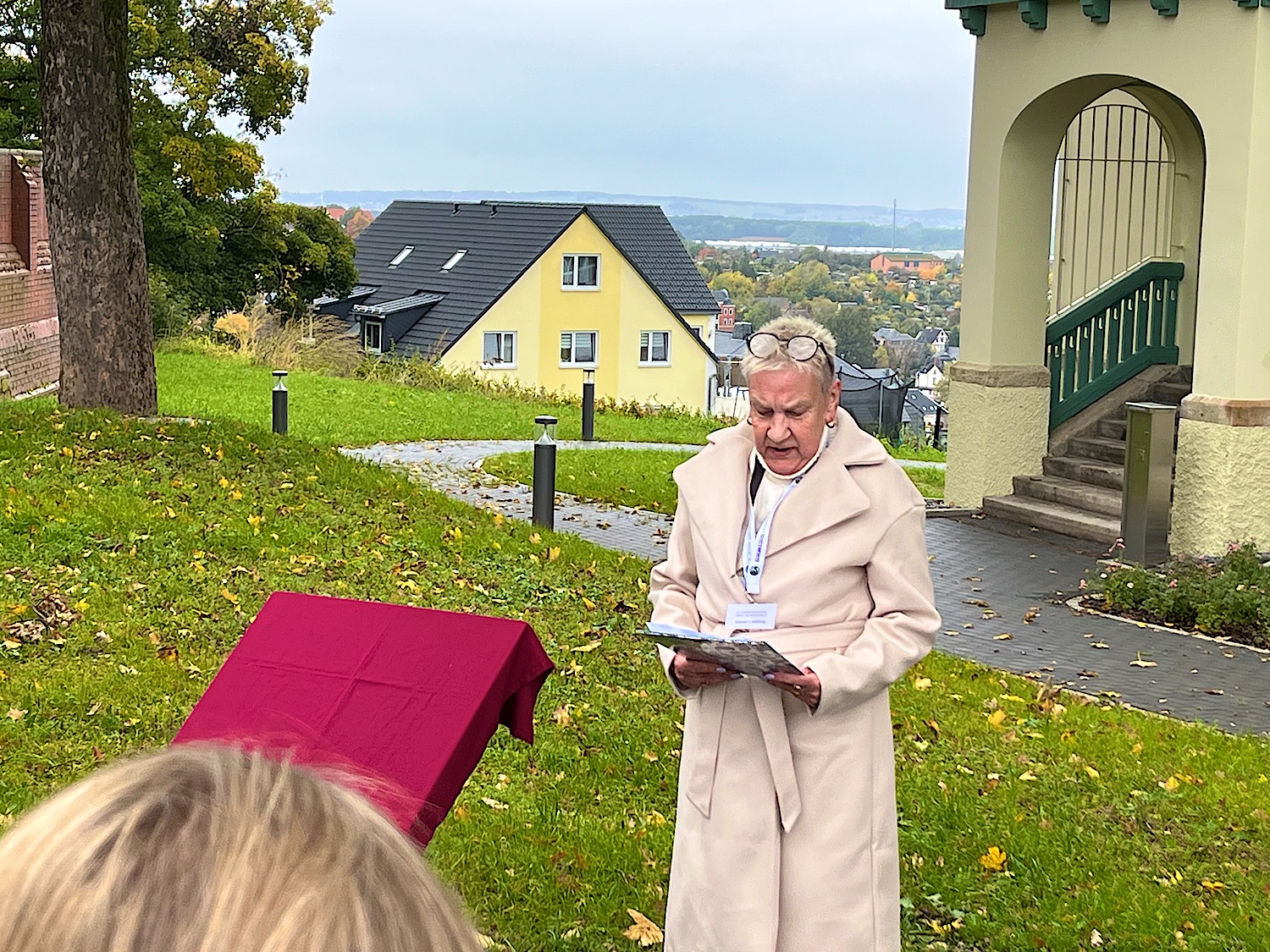 Mein besonderer Dank geht auch an den MP M.Kretschmer, vor allem aber an Annemarie Krause!Du, liebe Annerose hast nicht nur den Ministerpräsidenten, sondern uns alle, die vor Ort waren, beim Rundgang und auf der Bühne gesagt und gezeigt, dass man vieles nicht vergisst und nicht vergessen darf.
